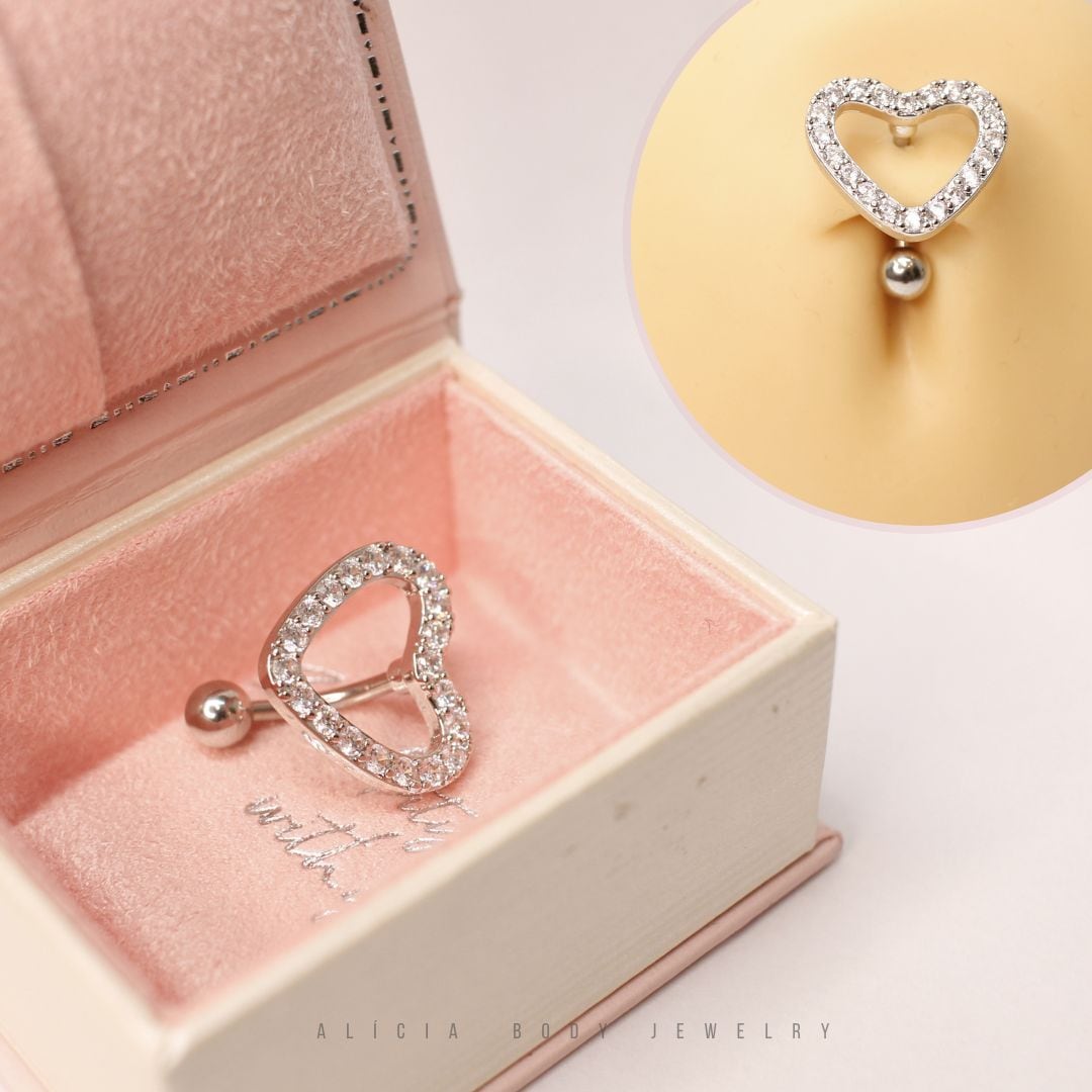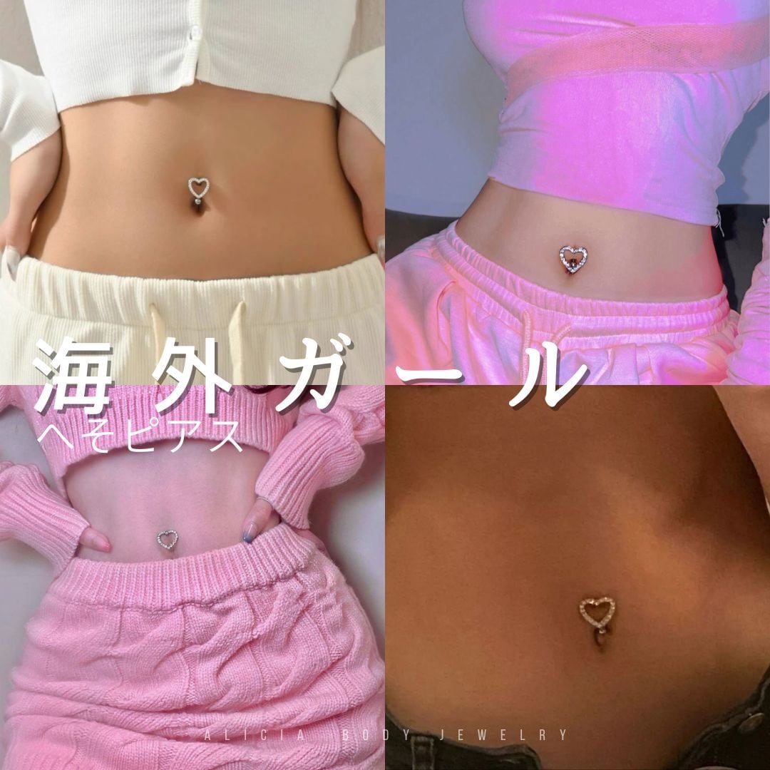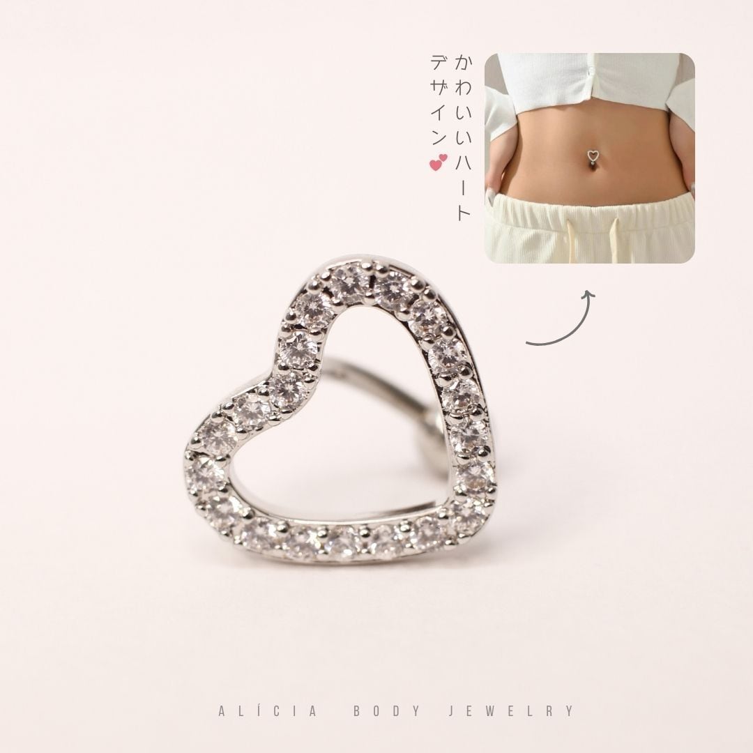 [88s•H5] クリスタルハート|へそピアス・ハートモチーフ・ジルコニアCZ・サージカルステンレス