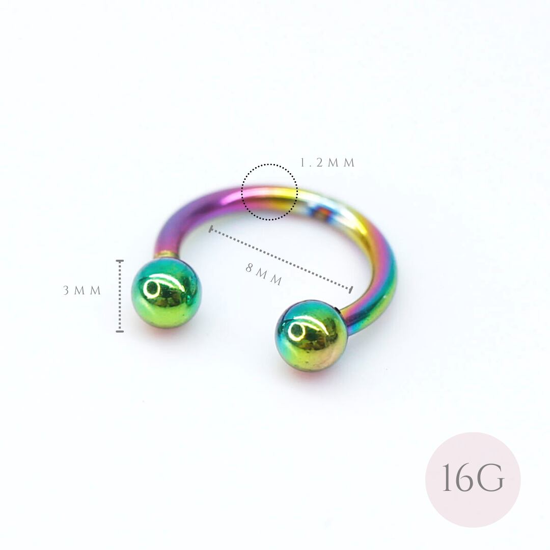 【3F3S•1i】サーキュラーバーベル • オーロラ • 内径: 8mm - Horseshoe ball Aurora color