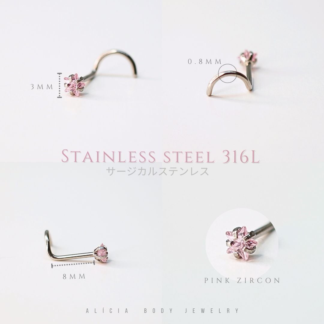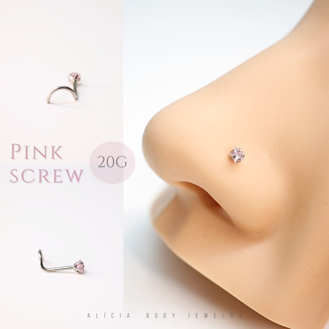 【62S9N•P3】ピンクスクリュー鼻ピアス • (CZ) Screw Nose Piercing Pink 3mm