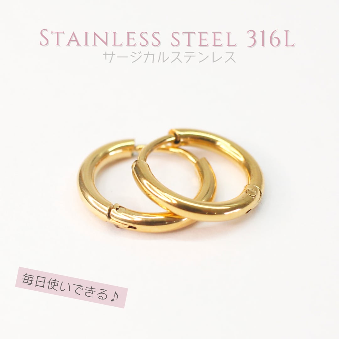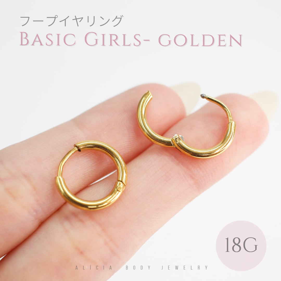 【B11A1•2G】フープイヤリングゴールデン 内径10mm 2個SET - Basic Girls Golden